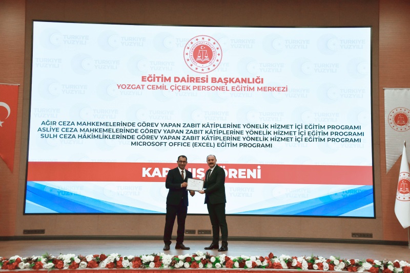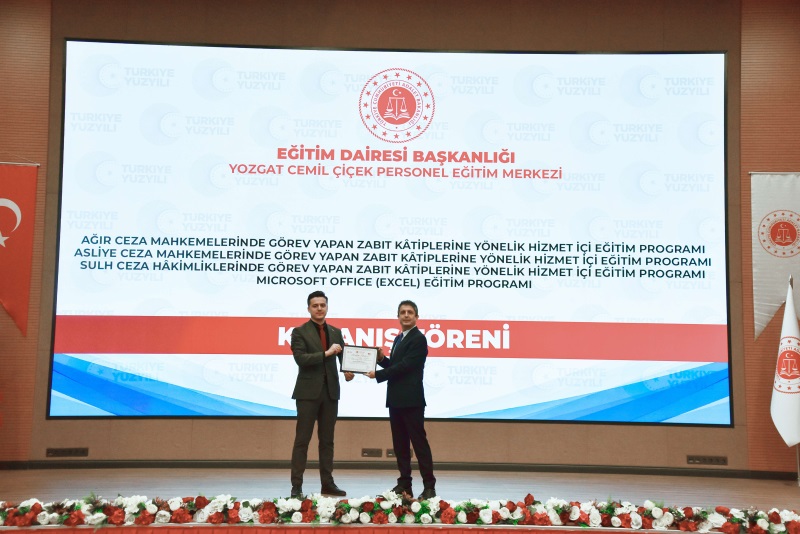 Eğitim Dairesi Başkanlığınca düzenlenen; 24. Grup Ağır Ceza Mahkemeleri, 24. Grup Asliye Ceza Mahkemeleri, 14. Grup Microsoft Office Excel ve 24. Grup Sulh Ceza Hâkimliklerine yönelik Hizmet İçi Eğitim Programı Kapanış Töreni Yozgat Cemil Çiçek Personel Eğitim Merkezimizde gerçekleştirildi