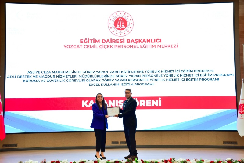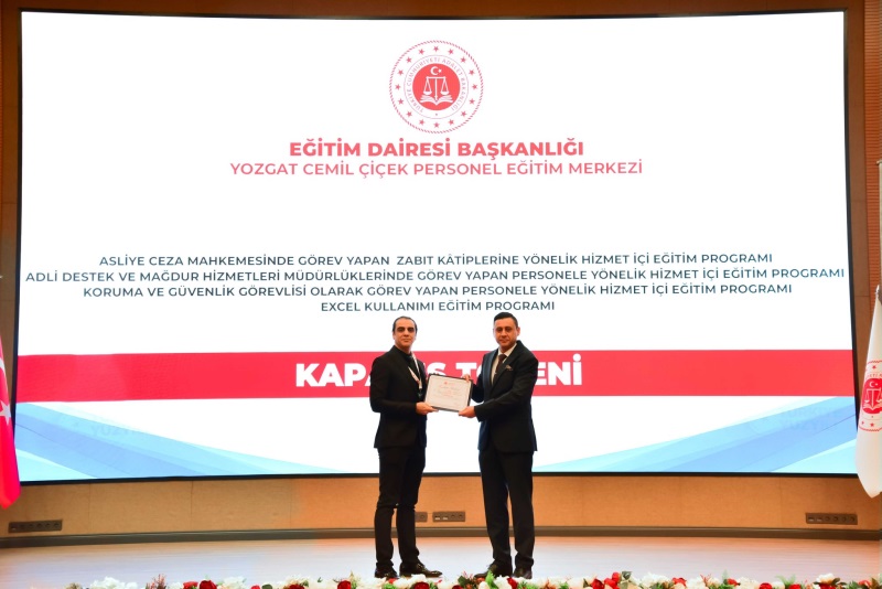 Eğitim Dairesi Başkanlığınca düzenlenen; 6. Grup Asliye Ceza Mahkemelerinde Görev Yapan Personel, 6. Grup Adli Destek ve Mağdur Hizmetleri Müdürlüklerinde Görev Yapan Personel, 6. Grup Excel Kullanımı ve 6. Grup Koruma ve Güvenlik Görevlilerine Yönelik Hizmet İçi Eğitim Programı Kapanış Töreni Yozgat Cemil Çiçek Personel Eğitim Merkezimizde gerçekleştirildi.